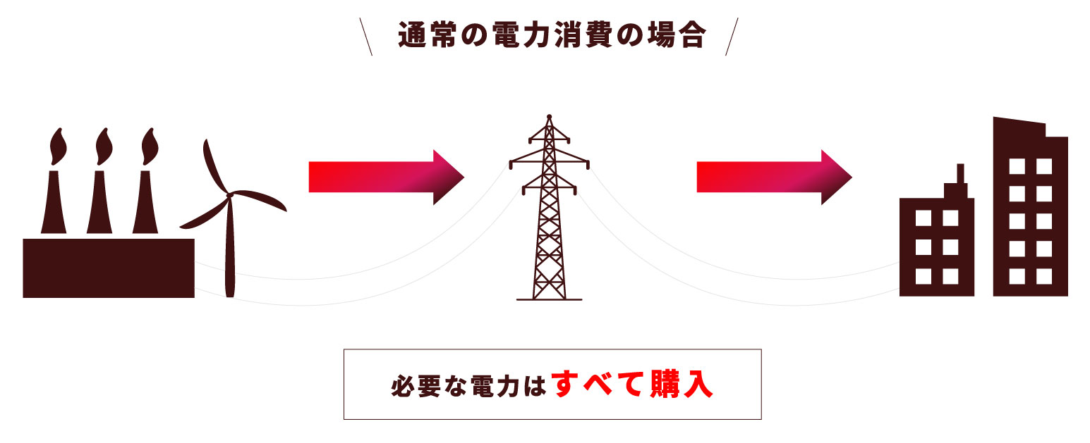 自家消費とは、これまでは必要な電力を電力会社から購入していましたが、